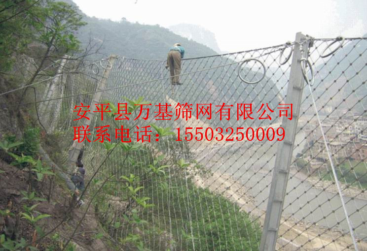 SNS边坡柔性防护系统主要产品可分为主动防护系统和被动防护系统两种:系统以钢丝绳作为主要构成部分并分为覆盖(主动防护)和拦截(被动防护)两大基本类型,sns边坡防护网的主要作用就是来防治各类斜坡坡面地质灾害和雪崩、岸坡冲刷、爆破飞石、坠物等危害的柔性安全防护系统技术和产品。sns边坡防护网由于其结构形成与起加固作用的主动防护系统相似,仍将其归入主动防护,并将两者分别称为标准主动防护和主—被动防护而加以区别。当主—被动防护系统覆盖于爆破开挖工作面上时,便形成了防止爆破飞石危害的柔性安全防护系统。sns边坡防护网是将以钢丝绳网为主的栅栏式柔性拦石网设置于斜坡上相应位置,用于拦截斜面坡上的滚落石以避免其破坏保护的对象,因此有时也称为拦石网;当设置于泥石流区内时,便可形成拦截泥石流体内固体大颗粒的柔性格栅坝。 sns边坡防护网由于系统的开放性,地下水可以自由排泄,避免了由于地下水压力的升高而引起的边坡失稳问题;主动防护网除具稳定边坡作用外,同时还能抑制边坡遭受进一步的风化剥蚀,且对坡面形态特征无特殊要求,sns边坡防护网也不会破坏和改变坡面原有地貌形态和植被生长条件