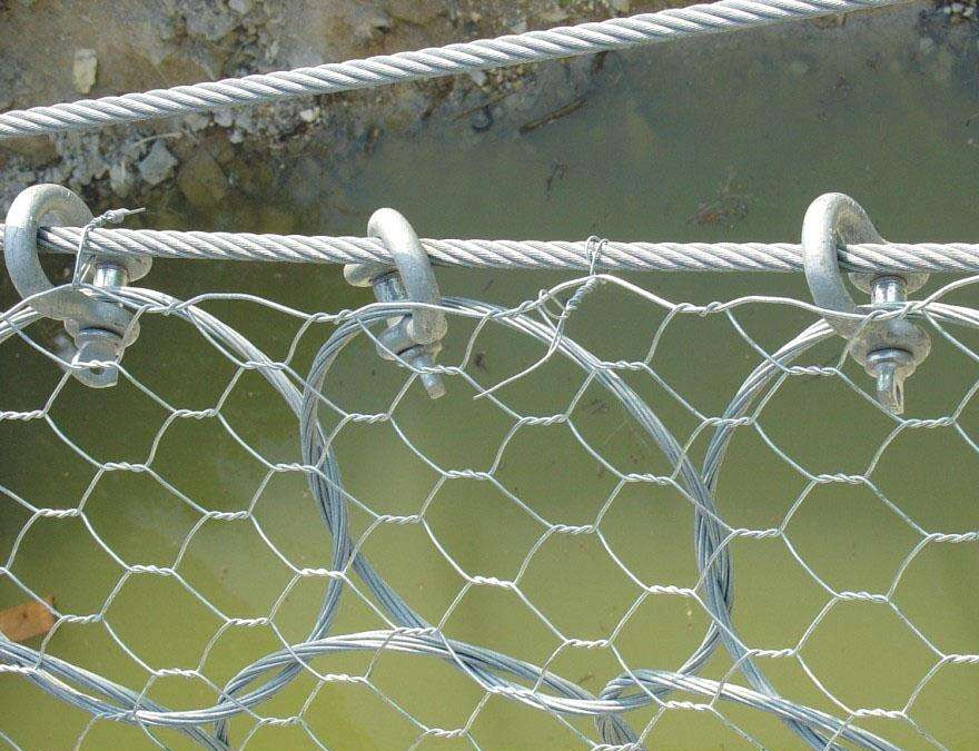 若有大块岩石或堆积物使体系处于紧张状况,体系的柔性将会下降,防护才能也相应下降,在阻拦下一次落石时不能得到充分保证,应予以铲除。此外,若有岩块、碎石、土和落叶等很多堆积物存在,它一方面将使体系处于张紧状况而下降防护才能,一起也许形成弹性渠道而下降体系的有用高度,亦应思考铲除,一般,当这种堆积高度超越体系规划高度的1/4时,则有必要予以铲除。对近水平装置的层顶式构造体系,有必要特别注意上述阻拦物的铲除,因为此刻的阻拦物将以重力方法直接效果在网上,且简单给下部的行车、行人形成一种极不安全的恐惧感。